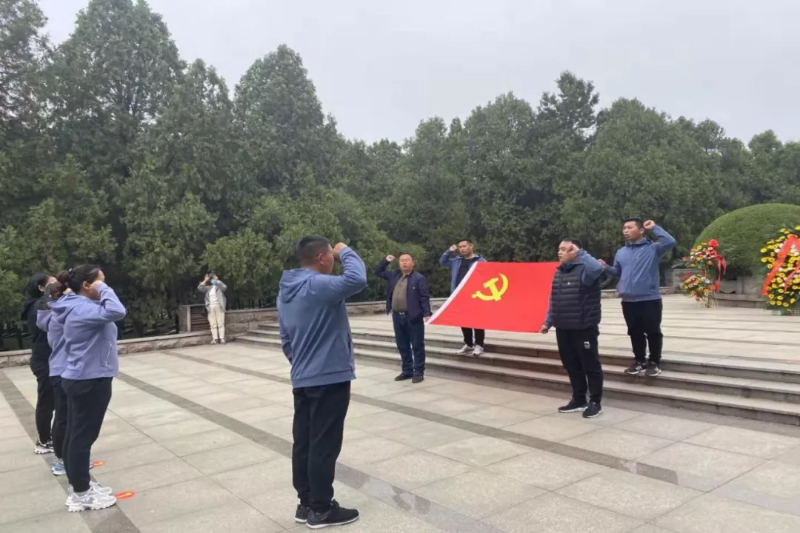 隨后,全體黨員來到位于紀念館后方的烈士墓地英烈亭前,共同瞻仰孟良崮戰役紀念碑,敬獻花籃,集體鞠躬,滿懷敬仰感恩之心重溫入黨誓詞,以此表達對革命先烈的崇高敬意。