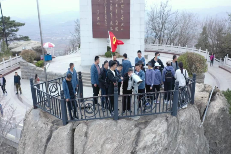 下午,全體黨員一起登上孟良崮山頂,瞻仰孟良崮戰役紀念碑,站在山頂遠眺,當年的孟良崮戰場盡收眼底,山巒迭起,地勢險峻。回首那場戰役的艱難程度,令人震撼,使全體黨員在心靈上受到洗禮,更加增強了不忘初心、勇往無前的熱血豪情。