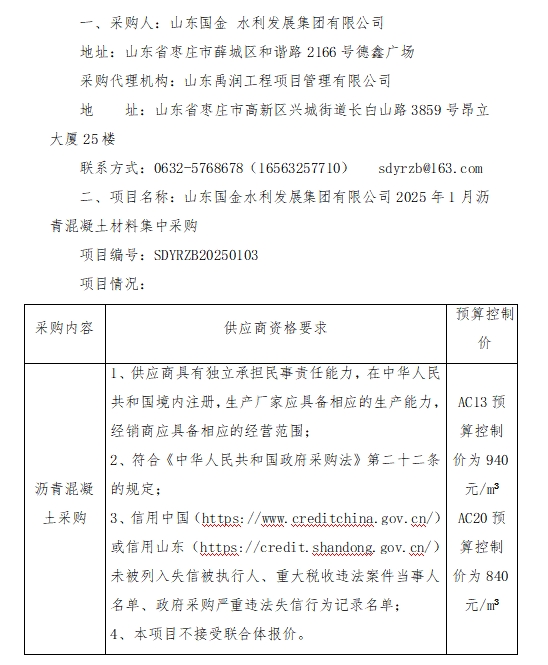 山東國金水利發展集團有限公司2025年1月瀝青混凝土材料集中采購競爭性磋商公告