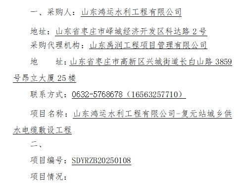 山東鴻運(yùn)水利工程有限公司-復(fù)元站城鄉(xiāng)供水電纜敷設(shè)工程 競(jìng)爭(zhēng)性磋商公告